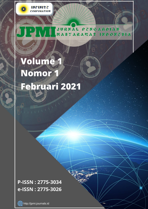 Jurnal Pengabdian Masyarakat Indonesia (JPMI) Volume 1, Nomor 3, Juni 2021 dipublikasikan pada tanggal 12 Mei 2021. Pada edisi kali ini, JPMI menerbitkan 7 artikel yang berasal dari beberapa afiliasi, seperti : Universitas Muhammadiyah Bangka Belitung, Universitas Bhayangkara Jakarta Raya, Universitas Jenderal Soedirman, Universitas Musamus, Universitas Hasanuddin, Universitas Muhammadiyah Palopo, Universitas Amikom Purwokerto, dan Universitas Pembangunan Panca Budi.